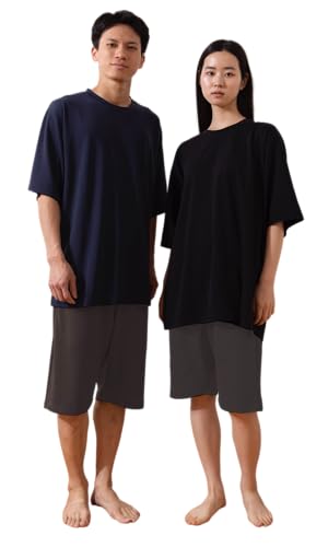 五分袖シャツと七分丈パンツのゆったり設計で、夏の室内着やパジャマに最適です。